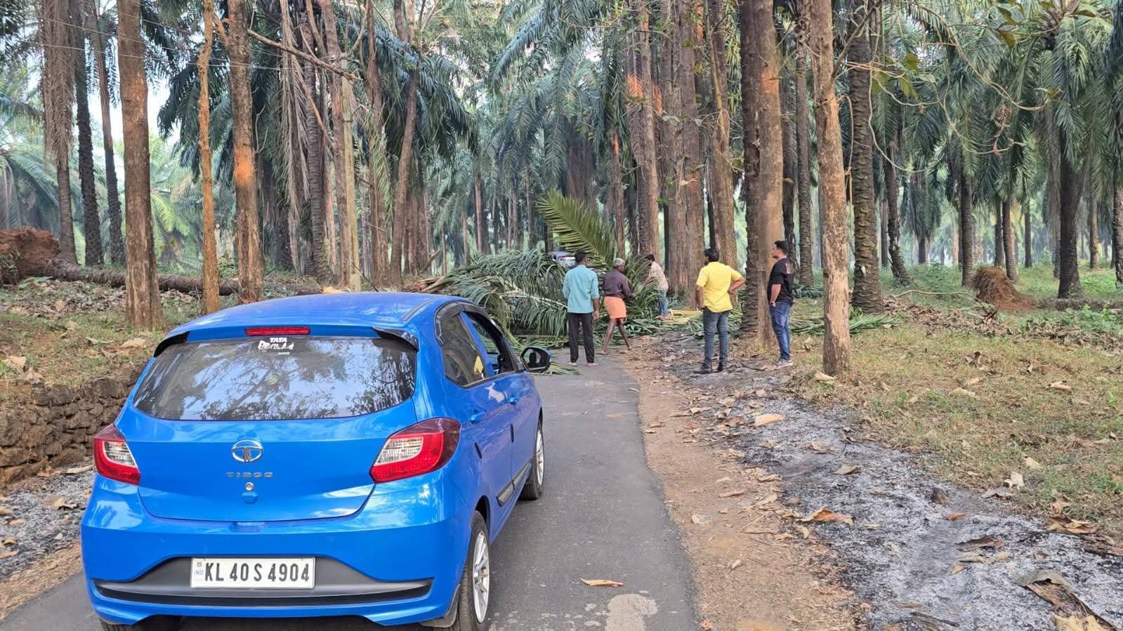 പന വീണ് ഇലക്ട്രിക് പോസ്റ്റുകൾ തകർന്ന് വൈദ്യുതി തടസപ്പെട്ടു